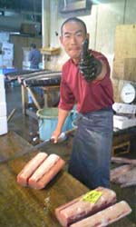 毎日より良いカジキマグロを提供できるように、競り場で、尾の方の切り口をみたり、魚体全体の張り具合などを見極め、身割れなどないか細心の注意を払い一本でも多く最高のカジキマグロを提供できるよう、頑張っています!!